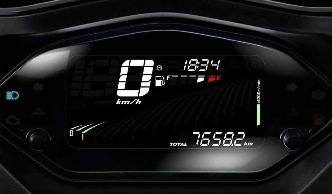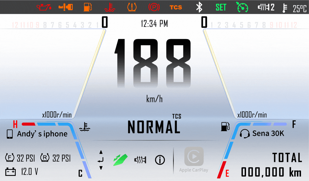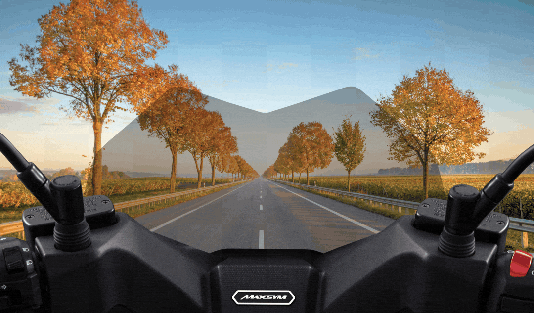 UI 設計合作案例 - SYM MAXSYM GT 儀表板,一改傳統的指針樣式,將儀表化作騎士視覺的延伸,開闊整個視野,隨著速度的提升,轉速動態線條將堆疊而上,帶出舒適前行的道路意象。