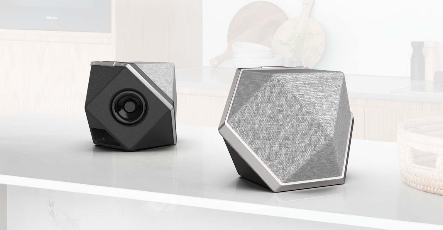 鑽石切割的音響外觀,創造型態上的變化並乎應精緻典雅,點綴居家環境,並以灰色調繃布使產品更為柔化,提升質感。