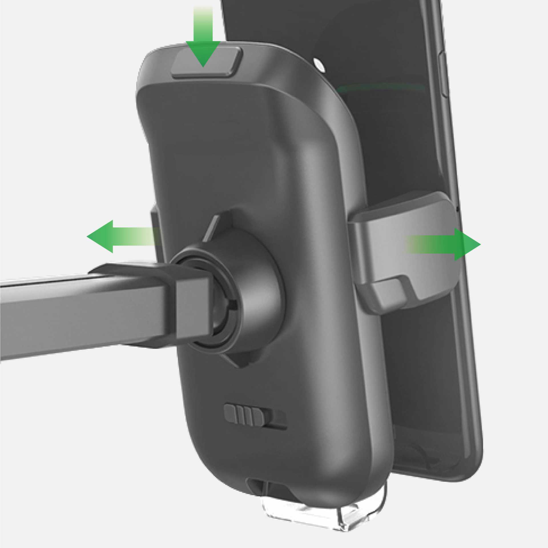 旋鈕設計可調整長度、角度,避免充電架遮擋開車視線,以符合架設的位置與空間。