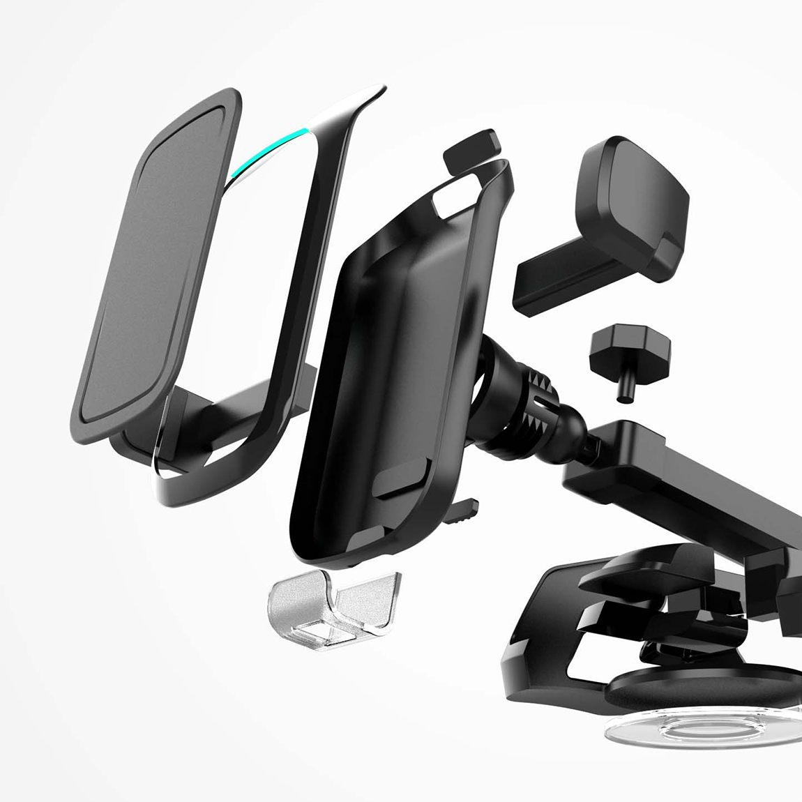 左右固定夾易操作且穩固,一鍵式的釋放設計讓單手也能輕鬆拿取手機,且可調節的底部支架可確保無線充電位置位於手機中心,通用各式型號的智慧型手機。