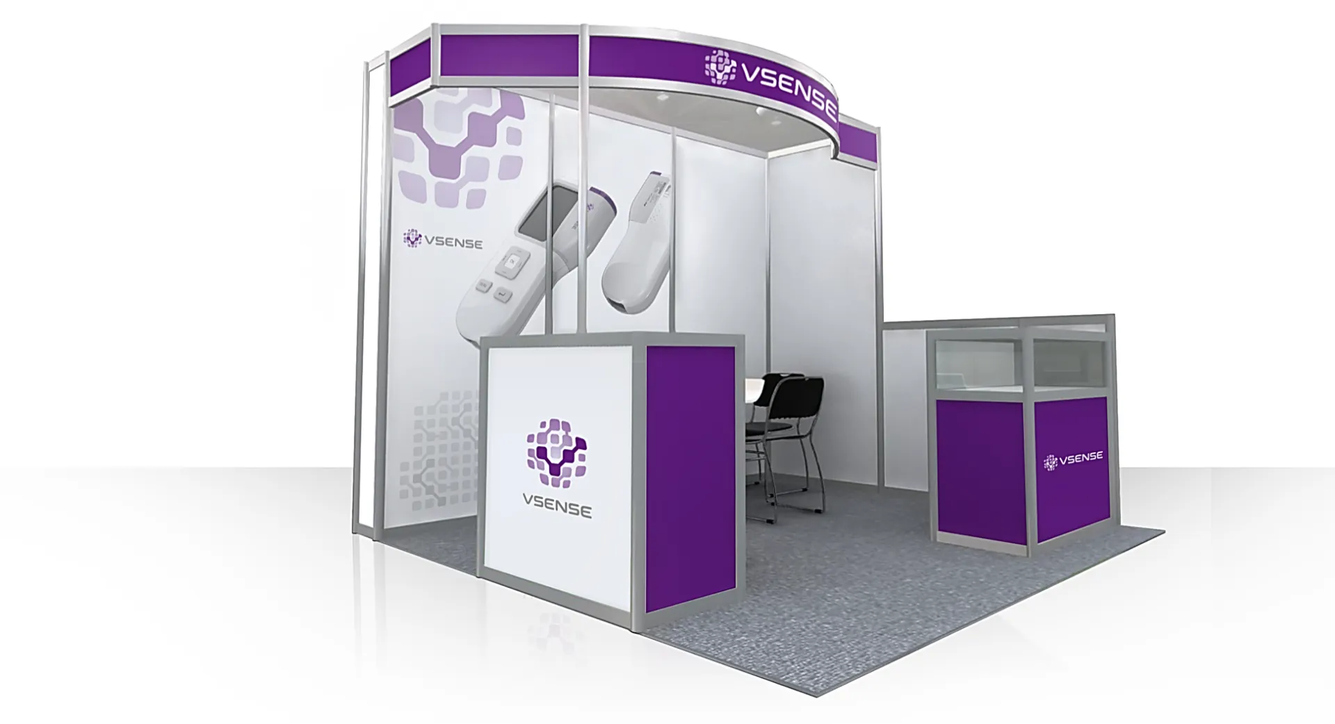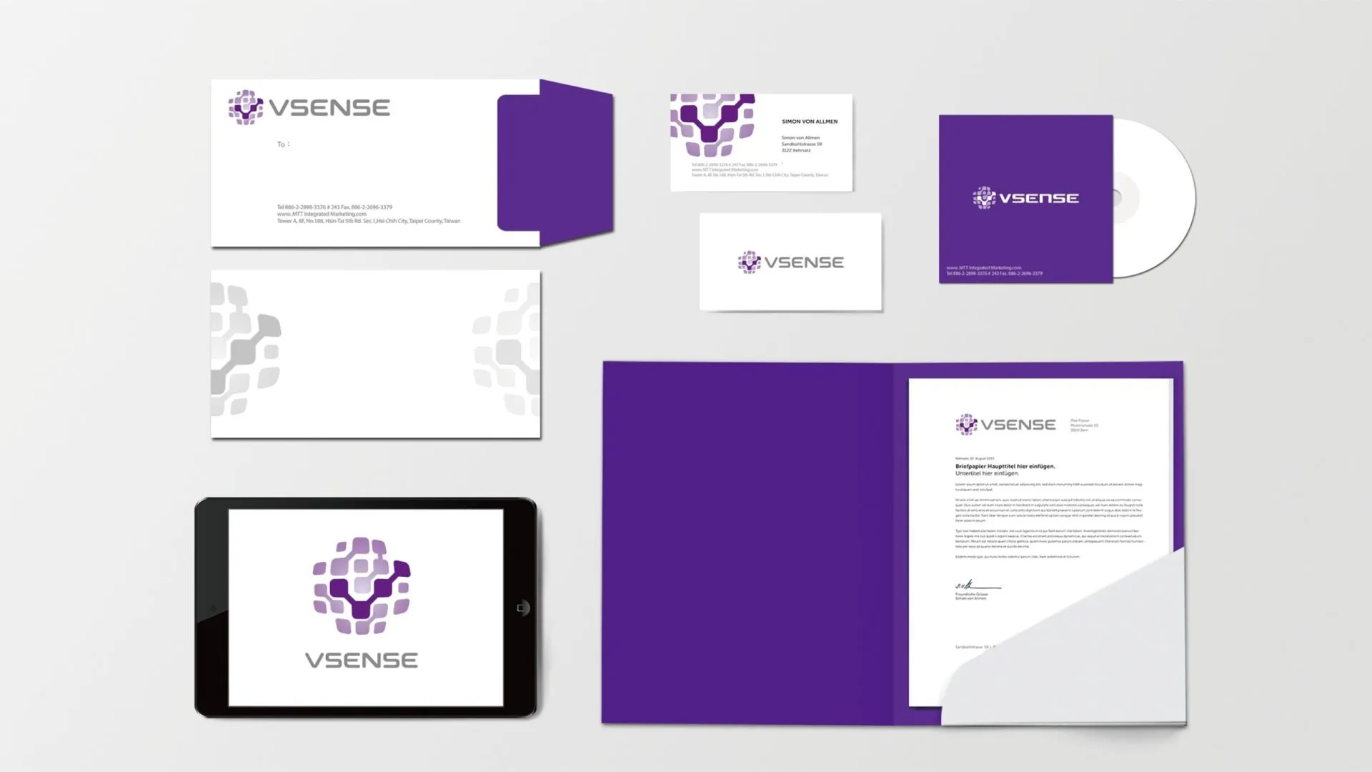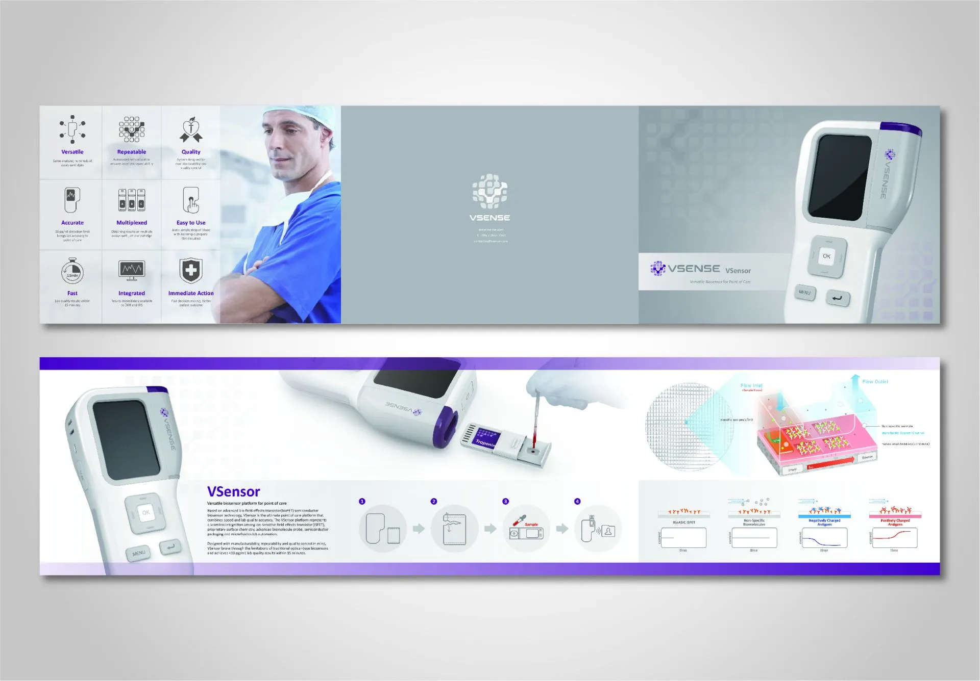 以晶圓方格元素做連結排列出 Vsense 字首,代表公司以電感測醫學檢驗系統的核心技術。排列出的圓球,象徵企業為一個充滿活力與能量的團隊。