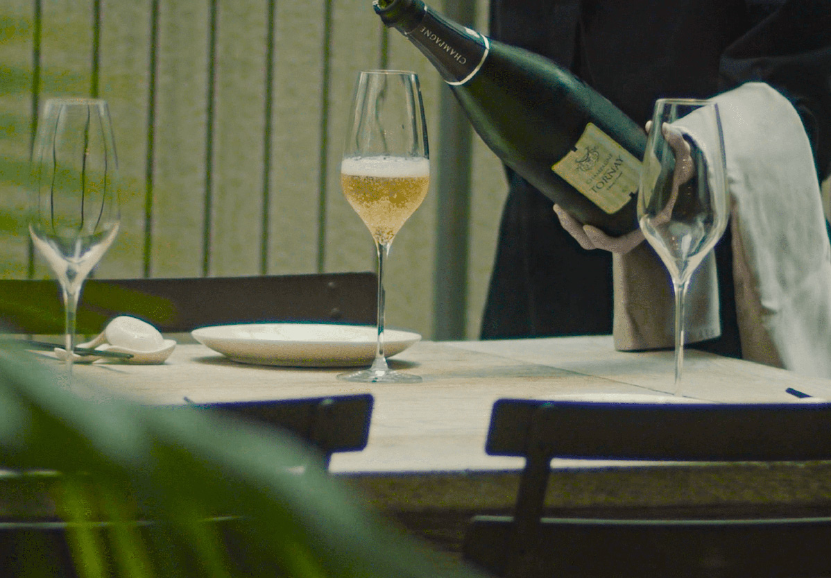 利用交叉剪接呈現出外場與內場,廚房爐火與用餐區之間的畫面──自帶香氣的大火快炒、法式餐飲文化的佈桌、上菜前的餐點裝飾,將富錦樹台菜香檳的混搭元素交錯出和諧的美感,整體畫面希望以引人入勝的角度,呈現餐廳在開餐前的準備過程,是一般客人們窺探不到,但卻最能體現富錦樹台菜香檳細緻用心的時間。結尾暖黃燈光的夜景,聚焦呈現出客人們踏入店內的期待,逐漸遠離的鏡頭拉伸,將更多感受交給觀影者親自體驗。